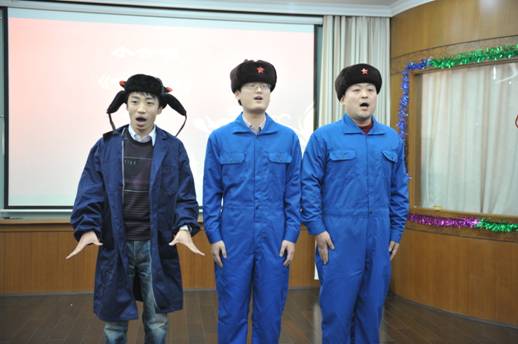迎新春联欢会在热切期待和一片欢歌笑语中拉开序幕。各室职工们自编自演,表演形式有歌曲、小品、舞蹈、乐器演奏、魔术、互动游戏、抽奖等,他们用各自不同的方式共同抒发了对单位的无限热爱,表达了对美好生活的向往和憧憬。一曲《恭喜发财》高调开场,瞬间调动现场气氛,二室小合唱《喀秋莎》、三室的钢琴伴奏《儿歌串烧》、五室小品《甄嬛外传之东海争艳》、中心舞蹈《团结style》、机关的相声《宇宙牌香烟》、研究生代表吉他弹唱《故乡》更是让职工们眼前一亮,掌声不绝。