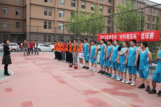 2013年5月9日中午12点30分,一年一度的声学所“中科海讯杯”篮球赛在所篮球场开幕,声学所所长王小民,党委书记张春华,副书记、副所长倪宏,工会副主席周秀霞等出席开幕式。办公室主任程洋主持开幕式。