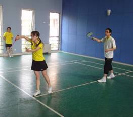 四场比赛战罢双方战平,于是最后一场也就成了决定双方胜负的一场比赛。我方派出的是会长请来的计算所外援女选手与来自声学微机电的蔡同学(下右图),这是两人首次搭档,因此效果如何还不得而知。而对方出战的则是他们的羽协会长带一位女选手。比赛开始之后,我方女选手几乎统治了网前,而蔡同学在后场也具备一定的防守能力;相比较而言,对方的女选手失误较多,虽然对方会长实力不俗,但是在这样的混双比赛中不能得到很好的发挥。因此我方在两局比赛中都是平稳地拉开分数,顺利地以2:0的大比分赢下了比赛。从而我们声学所代表队以3:2的总比分赢下了软件所代表队。