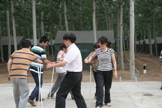 第二天一大早,大家就驱车赶往训练基地,这天的训练才是活动的重头戏。拓展项目包括空中断桥、集体木鞋、穿越电网、军事挑战项目和挑战150秒游戏等。高空断桥项目中,当一步步爬上8m高空时,腿不由自主地开始打颤,尽管有保险带,但初次尝试仍心存恐惧。站在上面才意识到,这种时候没有人可以帮你,只有自己调整好心态,奋力一跃,才能成功。同时,队友的鼓励和信任给了大家充足的勇气,队伍中没有一个人中途放弃,也没有一个人失败,队员平安下来后,大家的欢呼声,赞美声交织在一起,感动着这里的每一个人。随后进行了穿越电网项目,大家通过缜密的人员分工和部署,顺利的将每个人都成功送过了电网,通过这个项目,大家认识到工作中的合理分工可以对事情成败起决定性作用,在真正遇到危险时最后一个离开的人才是最伟大的人。下午时分,天公不作美,下起了小雨。等雨停后,军事训练场地已是一片泥泞,但是大家没有一句抱怨,坚定、完美的完成教练的每一项要求,翻高架桥、撑竹筏、荡桥、梅花桩、过沼泽……集体木鞋和挑战150秒游戏进一步增强了大家的团队合作意识和身体素质的训练,大家忘记了年龄,忘记了工作的身份,忘记了生活的环境,抛开一切,全身心的投入到训练中。下午四点,整个拓展训练结束,教练为每个人颁发了证书。