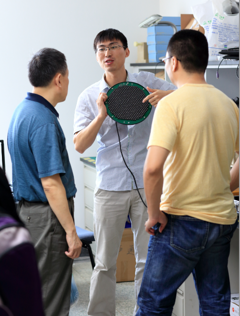 随后,在实验室主任杨军的带领下,船舶系统工程研究院基层党支部成员参观了通信声学展览室。通信声学党支部成员耐心地向大家展示了实验室的许多研究成果,如高指向性扬声器,超声导盲仪,无线扩声系统等。并且让大家亲身体验了对于很多已经产品化的科研成果。