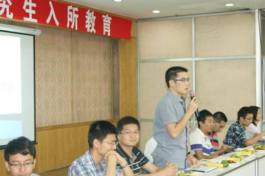 研究生会特地为从雁栖湖校区早早赶来的新生们准备了水果和茶点,交流在一片欢快的气氛下开始。寇毅伟首先代表声学所高年级研究生欢迎2013级新生们加入声学所的大家庭,并邀请新生积极参加声学所研究生会,通过参加学生工作和活动充实自己的研究生生活。紧接着研究生会各部长也代表各自部门对部门的各项同学们喜闻乐见的丰富学习和文化生活的活动进行了介绍,同时也向在座的新同学们发出诚挚的邀请。为了吸引大家加入研究生会,各部门互相“爆料”,层出不穷的玩笑也引得在会场内笑声阵阵。