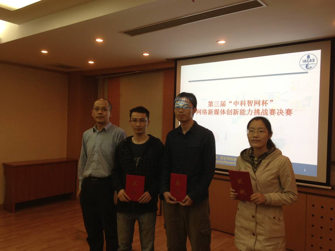 2013年9月29日下午,中科院声学所第三届“中科智网杯”创新能力挑战赛决赛答辩在德昭楼218会议室顺利举行。国家网络新媒体工程技术研究中心副主任邓浩江研究员、赞助商中科智网科技有限公司产品事业部总监潘梁以及组委会的专家出席了本次会议。