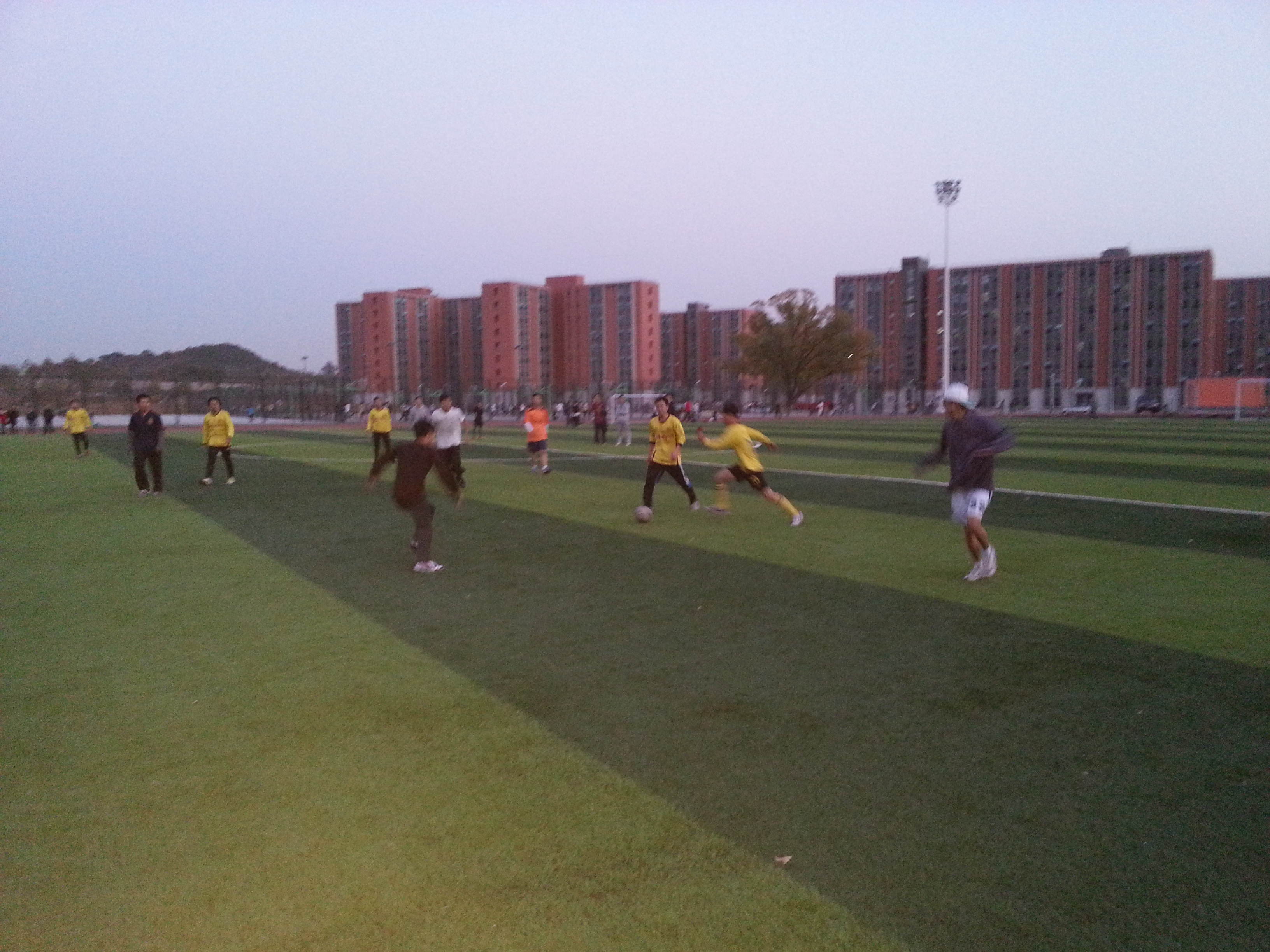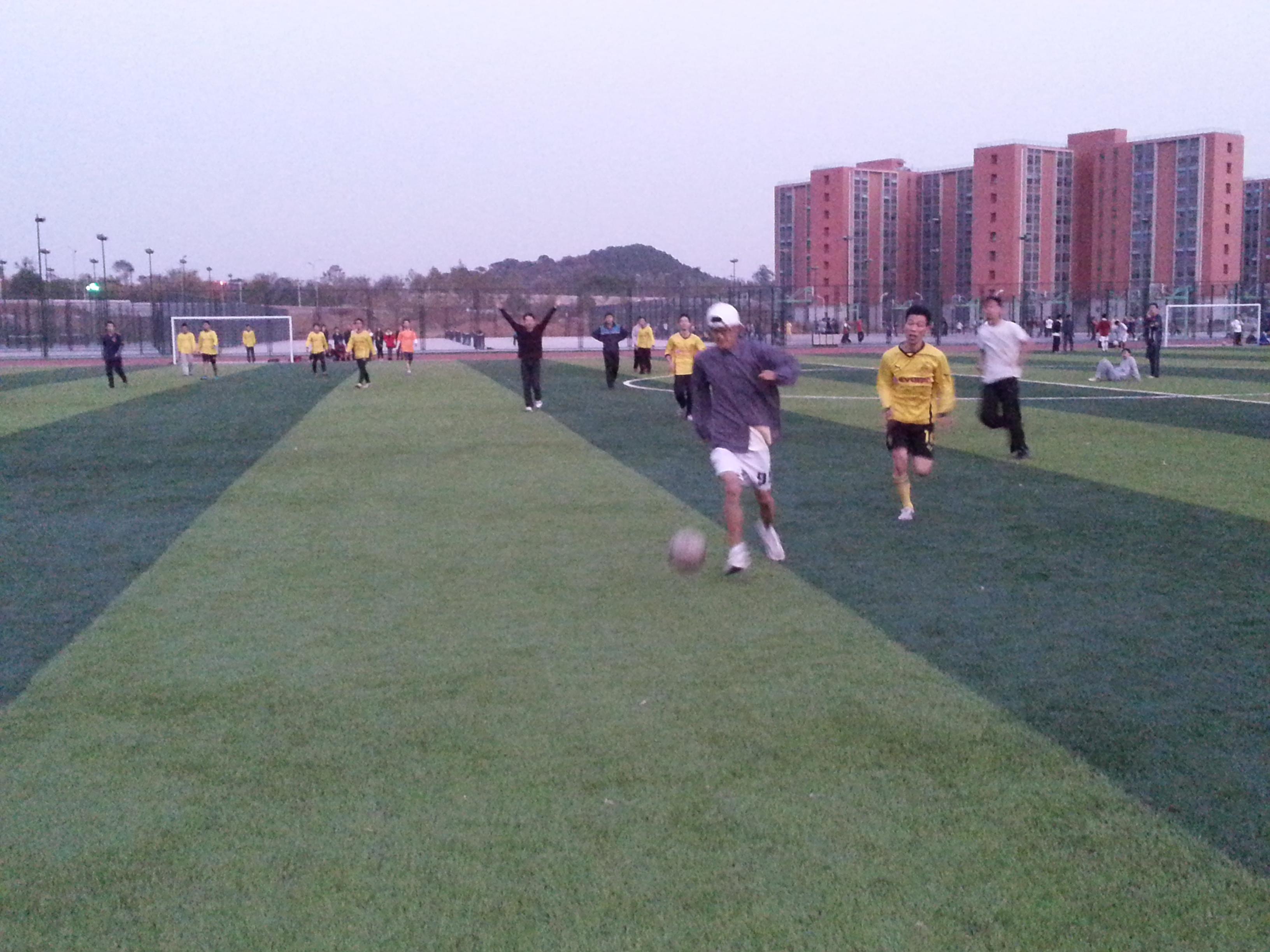 为了增进声学所研一新生各班级间的感情,加强同学们之间的交流,2013年10月28日,在雁栖湖校区学习的研一三个班级在足球场举行了一场足球友谊赛,由四班和六班队员组成联合队,对阵五班。