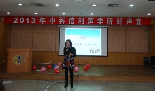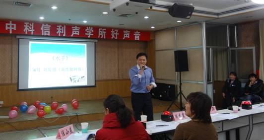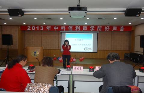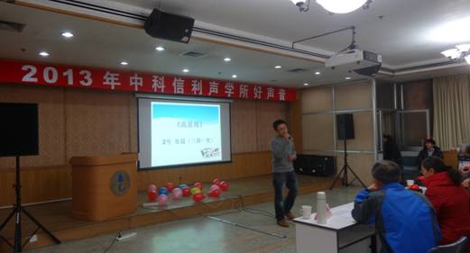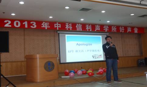 2013年11月26日晚上19:00-21:00,大家期待已久的“中科信利”声学所好声音初赛在DSP楼多功能厅如期举行,本次大赛由所工会主办,所团委和研究所会承办,比赛得到了语言声学及内容理解实验室的大力赞助。