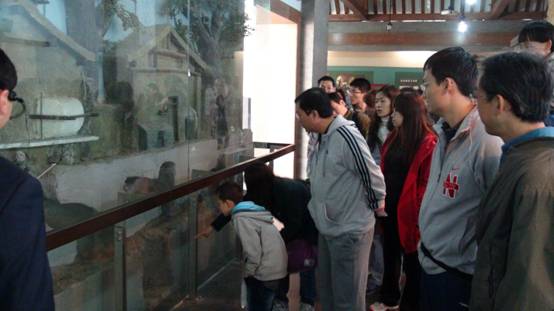 8点30分,汽车顺利到达焦庄户地道战遗址纪念馆。大家怀着对革命先烈的敬畏之情,依次走进纪念馆,切身实地的感受抗战岁月的艰苦生活。纪念馆始建于1964年,是在焦庄户村地道遗址的基础上建立的,后经不断更名,最终被定为“北京焦庄户地道战遗址纪念馆”。初进纪念馆,首先进入眼帘的是文物展厅,主要包括冀东抗战燃烽火、人民战争建奇功、今日顺义更美好等部分。讲解人员细致耐心的为我们讲述着当年的历史,从抗战爆发的紧张形势,到全面人民战争的开展,透过展馆中一件件珍贵的文物资料,包括焦庄户民兵使用的武器衣服和缴获的武器,以及一些当时珍贵的历史照片,真实再现了焦庄户人民在党的领导下,团结一致、英勇抗敌的历史景象。展厅还为我们展现了顺义区,在党和国家领导人的殷切关怀下,改革开放以来的新变化,一片蓬勃发展、欣欣向荣的新景观。