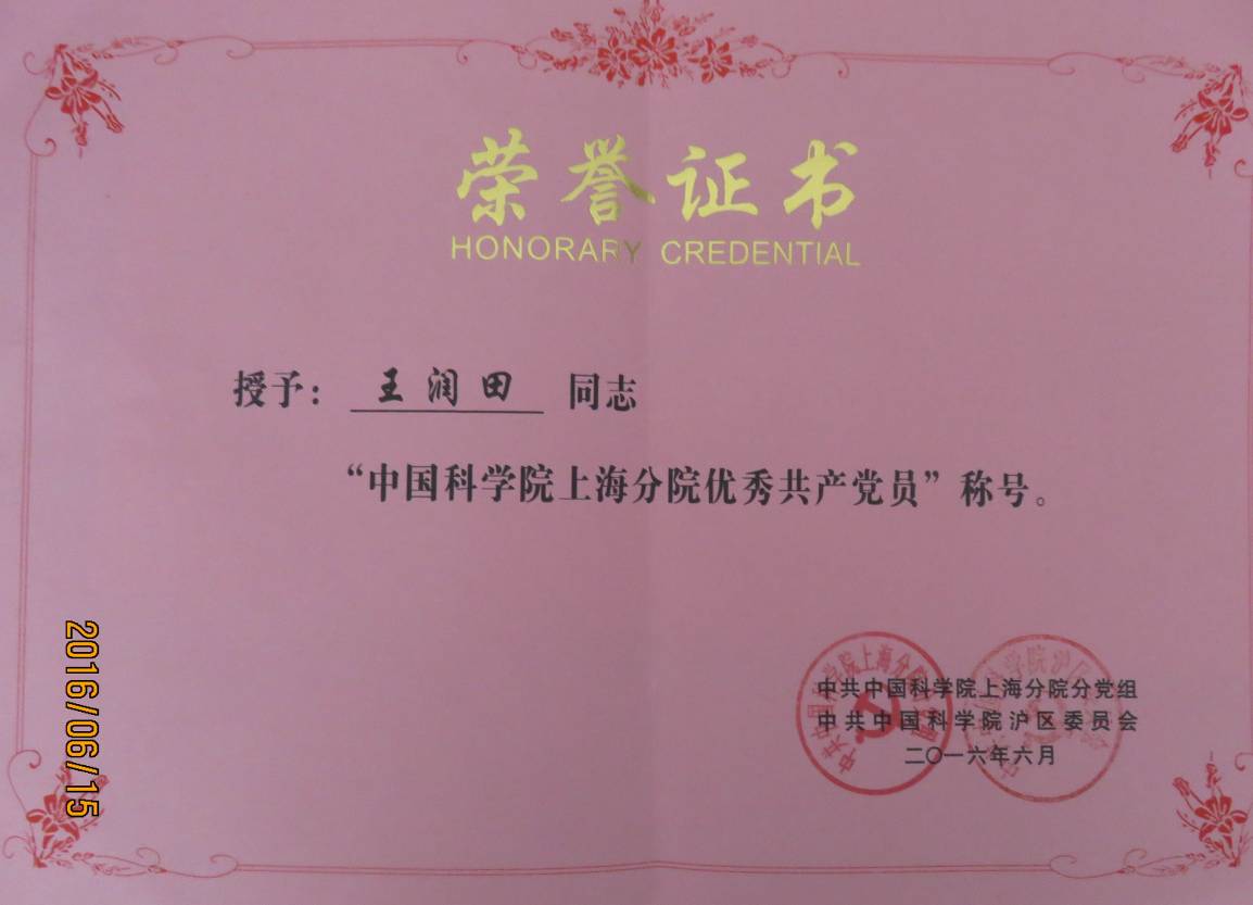 大会表彰了一批先进党组织、优秀共产党员和优秀党务工作者。东海站党委被授予“中科院上海分院先进基层党组织”称号,站党委委员王润田同志被授予“中科院上海分院优秀共产党员”荣誉称号。