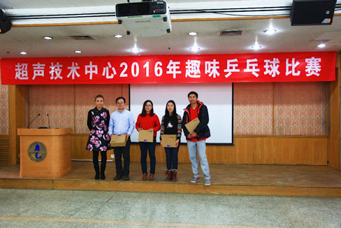 冬日的严寒悄悄来临,但是依然挡不住超声人爱运动的热情。为进一步活跃职工学生业余生活,增强职工及学生的身体素质,缓解科研压力,增进老师学生间的友谊,超声技术中心分工会举办了2016趣味乒乓球比赛。比赛分为两项,即趣味托球跑比赛和单项比赛,其中单项比赛包括男子单打、女子单打、男子双打、混合双打比赛。趣味托球跑比赛、单打比赛以及双打比赛分别于2016年12月9日、12日和13日中午在DSP四层多功能厅举行。此次比赛声学所工会主席林伟军研究员、超声技术中心副主任张碧星研究员,以及丛健生、毛捷、王文、徐联、原建平研究员等都积极参加了活动。两项比赛共有50余人、96人次参加。