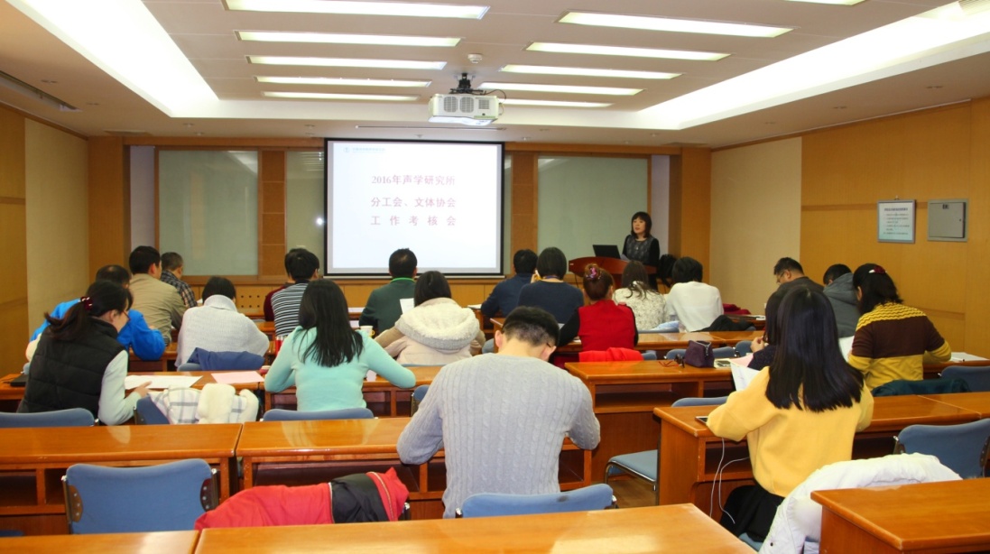 2016年12月16日,声学所召开了2016年度分工会和文体协会工作考核会。所工会主席林伟军、常务副主席周秀霞、工会委员会委员、各分工会主席、文体协会会长等30余人参加了会议。会议由工会常务副主席周秀霞主持。