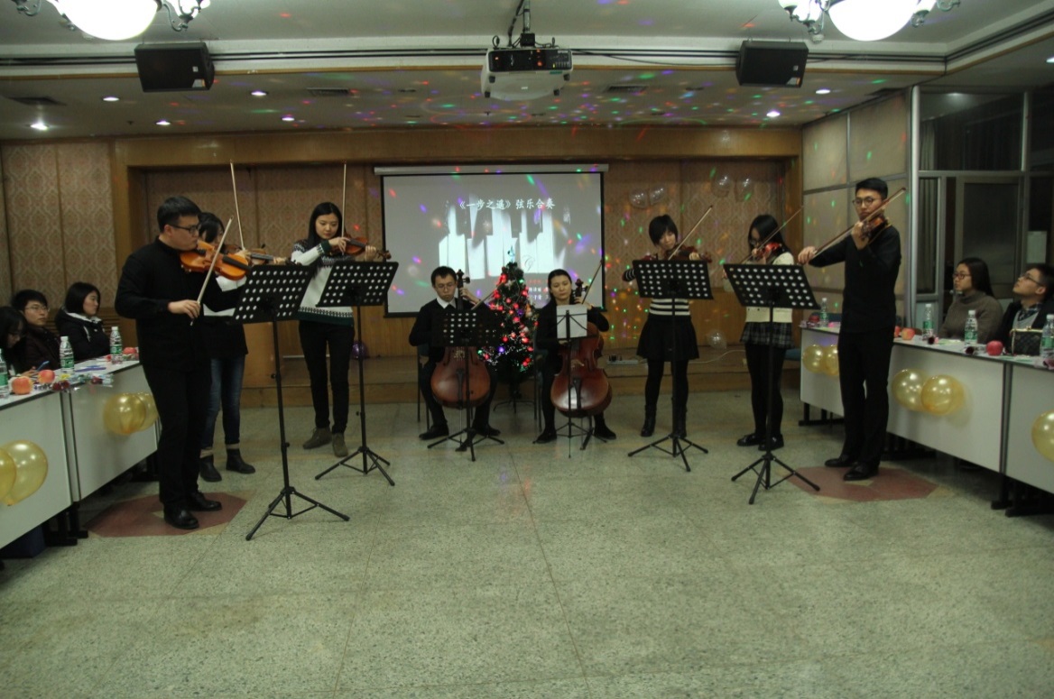 一曲由联谊成员吴鹏飞及其亲友团倾情演奏的大小提琴合奏《一步之遥》,成功点亮了活动的开场。主持人分别是来自声学所的李东宁和北语外院的于艺,活动共分为四个小组,在主持人风趣幽默的介绍后,一场场有趣而又愉快的游戏相继开始。
