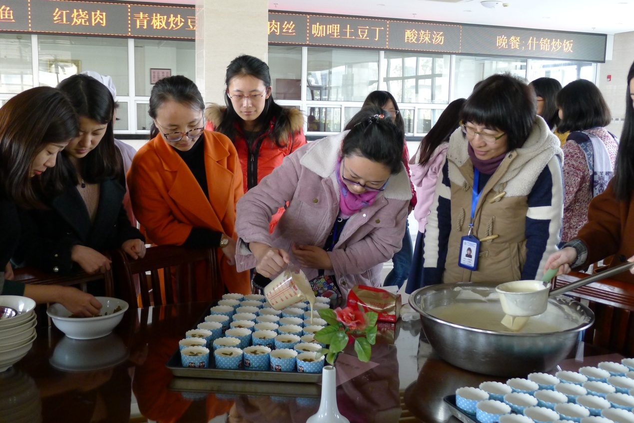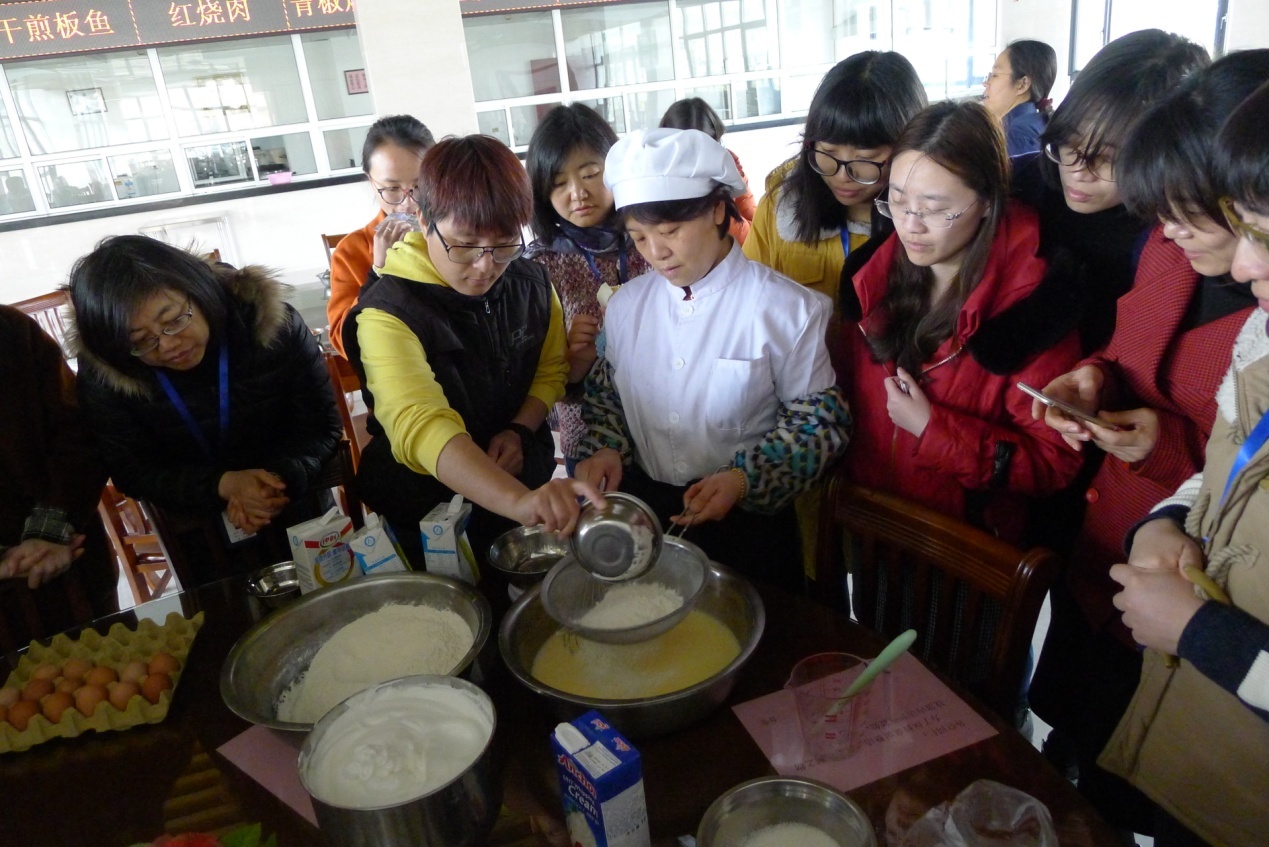 活动主要内容是制作蛋挞和纸杯小蛋糕,邀请了食堂糕点师傅朱燕作为技术指导,女同胞们个个跃跃欲试。在和谐温馨的氛围中,在朱师傅的口述和指导下,大家自己先动手制作蛋挞,有人负责称量,有人打蛋,有人对材料进行搅拌,有人负责把搅拌好的材料装入蛋挞皮中……大家忙得不亦乐乎!