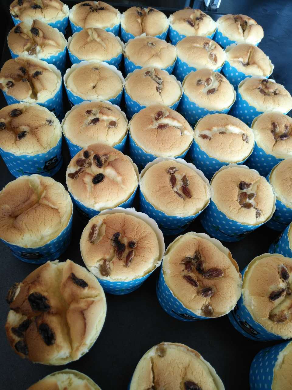 大家把搅拌好的材料装入一个个小清新的纸杯中。