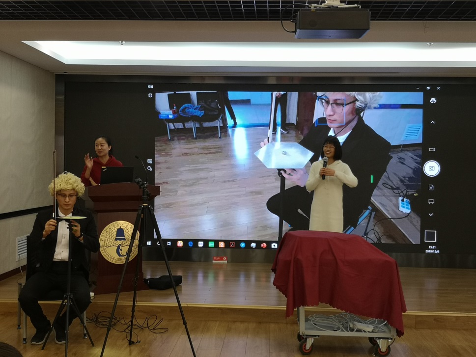 在声学科普动画展映环节,师生们欣赏了《白鱀豚躲猫猫》《丈量大海》《聆听地震的隐秘脚步声》等8部声学科普动画片。接下来,在声学科普课堂,水声工程中心的张志博研究员为同学们带来了科普课《走进超声世界》,他结合了生活中常见的声学现象,通过小实验与同学们互动,向大家介绍了声学技术的原理和广泛应用;随后,噪声与振动重点实验室的科普志愿者们为师生们带来了精彩的科普剧表演《沙粒舞曲》,将声学共振原理带入生活剧情,向在场师生们展示了声音是如何“指挥”沙粒“跳舞”的。最后,师生们来到了半消声实验室,通过科研人员的讲解,师生们了解了半消声实验室的结构,声学实验的环境要求等。