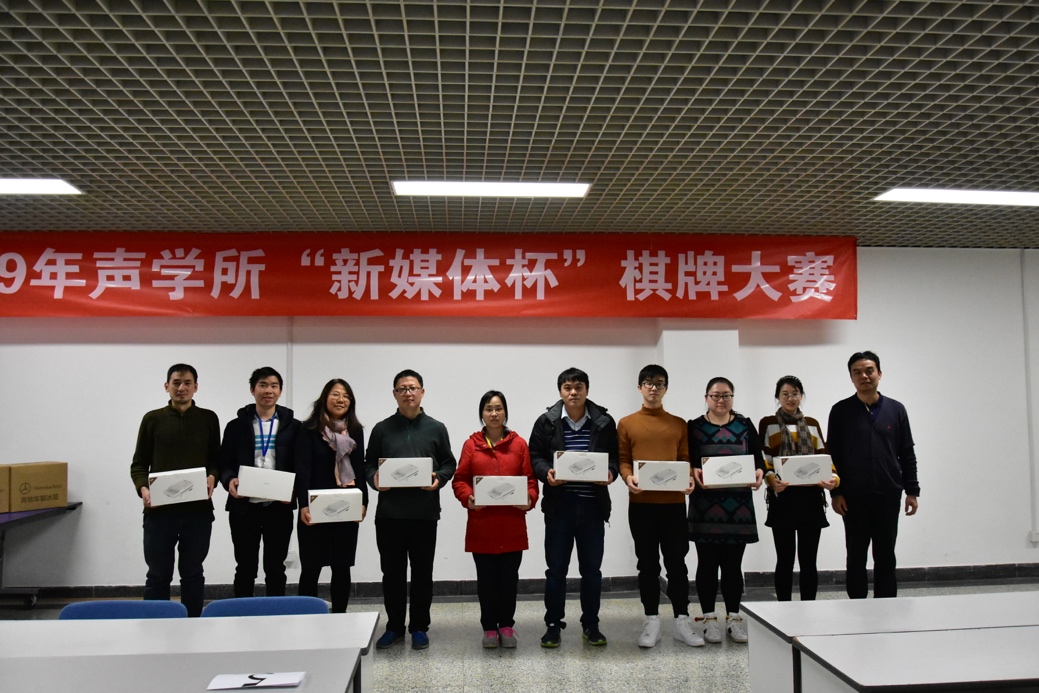 2019年12月5日,经过七天激烈的角逐,2019年声学所“新媒体杯”棋牌大赛在声学所DSP大楼负一层活动室圆满落幕。声学所工会主席林伟军、网络新媒体党支部书记朱小勇出席了闭幕式。本次棋牌大赛由声学所工会主办、棋牌协会承办,共有120人参赛,其中升级28队56人,五子棋64人。本次活动以“庆祝建国建院70周年”为主题,为职工和学生们提供了一个切磋牌艺棋艺的平台,促进了大家的相互交流,更展现了我所师生积极向上的精神风貌。