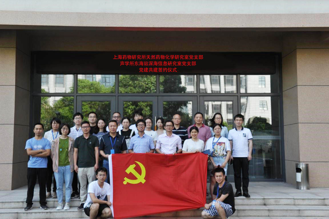 为了进一步落实加强基层组织党建工作,深化“不忘初心、牢记使命”主题教育活动,充实支部建在实验室实践活动内容,2020年8月17日下午,东海研究站深海信息研究室党支部与中科院上海药物研究所(以下简称药物所)天然药物化学党支部举办了结对共建仪式。东海站党委书记张伟才,上海药物所工会副主席、党政办副主任方婷出席本次共建活动。共建活动由深海信息研究室党支部书记洪峰主持。