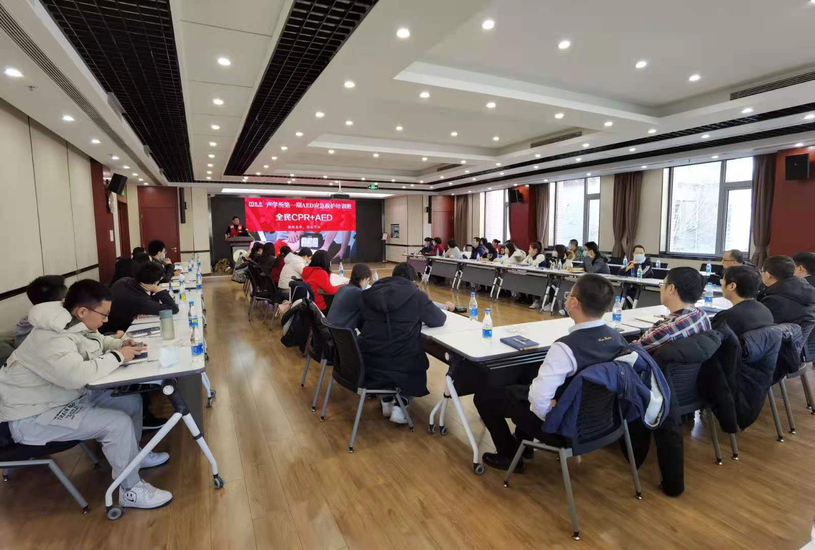 培训分为理论教学和实践操作两个部分。培训老师首先指出AED急救方法普及的重要性,国家对于施救者权益的法律保障;然后通过PPT讲解和实际演练,使每一位培训人员都能掌握心脏复苏术(CPR)和AED的操作步骤与使用方法,争取为心脏骤停患者赢得“黄金4分钟”的抢救时间;最后,培训老师还为大家讲解了生活中常会用到的海姆利克急救法和应对癫痫发作的急救措施。