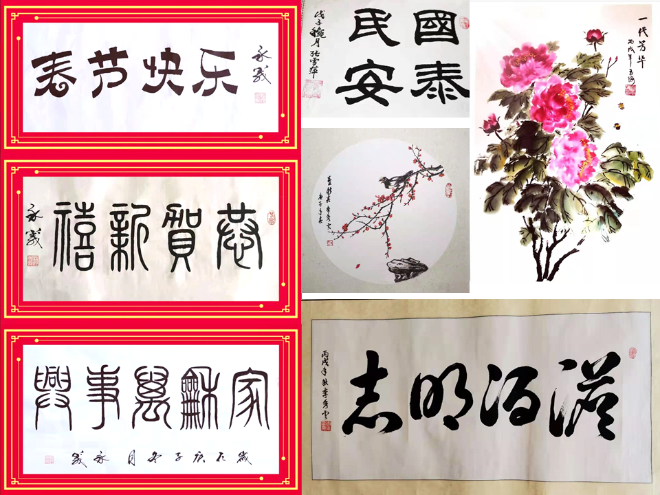 李秀云、赵永义、白玉海、张雪萍老师展现了高超的绘画和书法才艺。