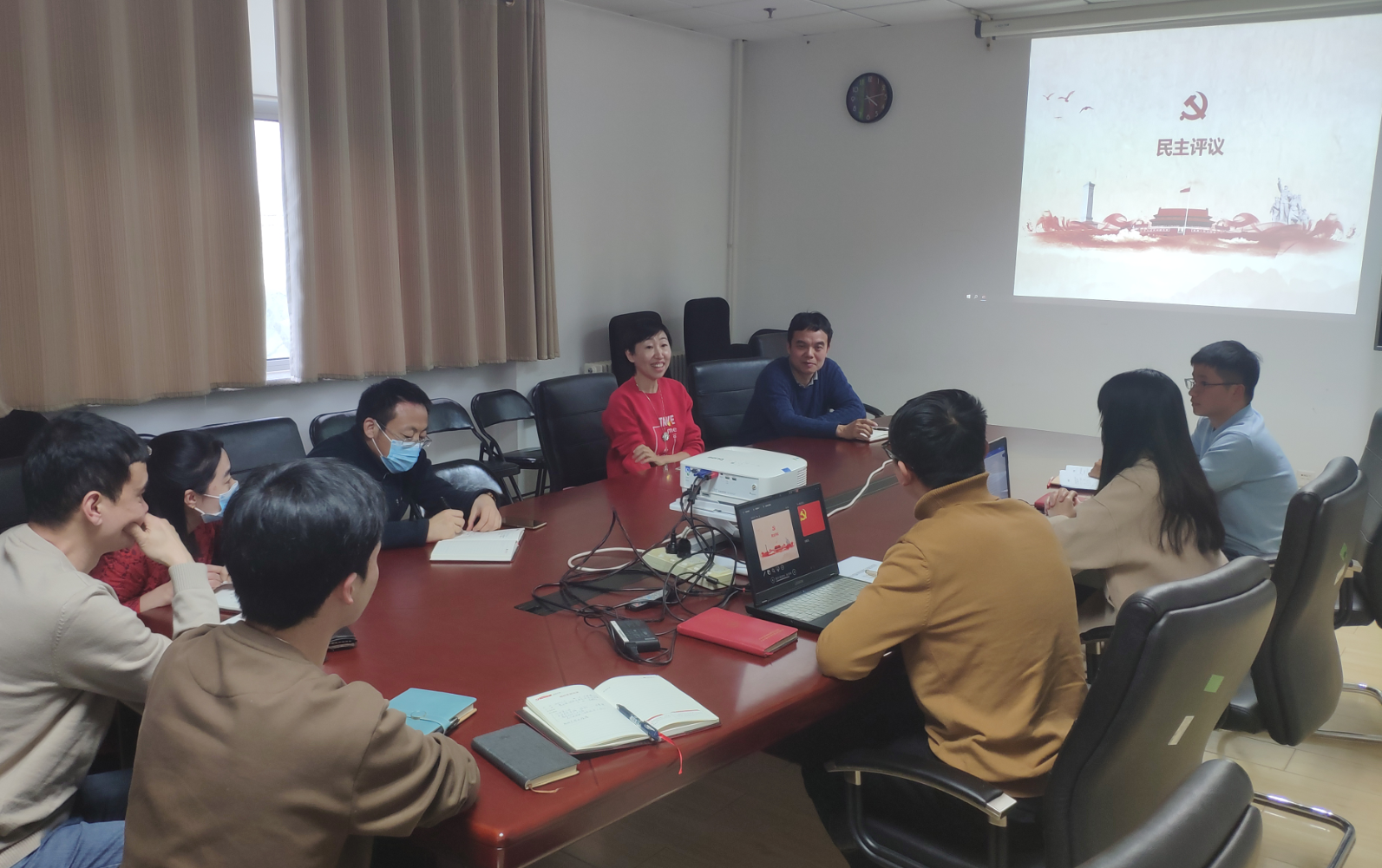 在民主评议环节,会议气氛严肃认真。在过去的一年中,广大党员深深感受到,中国共产党带领全国人民全力抗击新冠疫情、不惜一切代价保障最广大人民的生命健康,终将带领人民取得抗疫战争的胜利。结合树牢“四个意识”、坚定“四个自信”、坚决做到“两个维护”,参会的党员同志就自己一年以来的理想信念、履行党员义务、履职尽责、参与党支部活动、廉洁自律等诸多方面进行了全面深刻的总结、批评与自我批评,查找了在政治、思想、学习、工作等方面的问题和不足。展望今年的学习和工作,大家认为,“十四五”是一个重要的战略机遇期,应该持续加强党的理论知识和业务知识的学习,把握机遇,克服困难,推动科研创新工作迈上新的台阶。