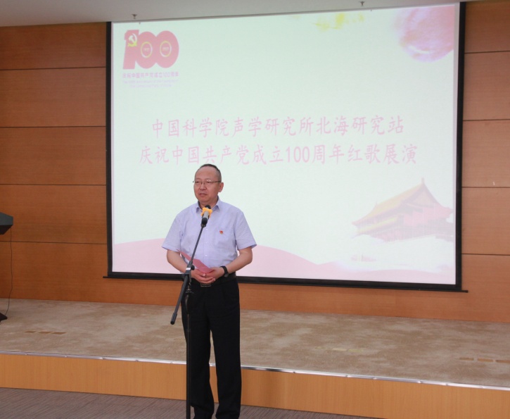 2021年6月29日,北海研究站庆祝中国共产党成立100周年红歌展演活动在高新区新园区举行,广大职工用歌声表达对党的无限热爱和美好祝福,激励全站上下不忘初心、牢记使命,以更加奋发有为的姿态投身科技报国的生动实践。北海站领导、职工和学生50余人参加展演活动。