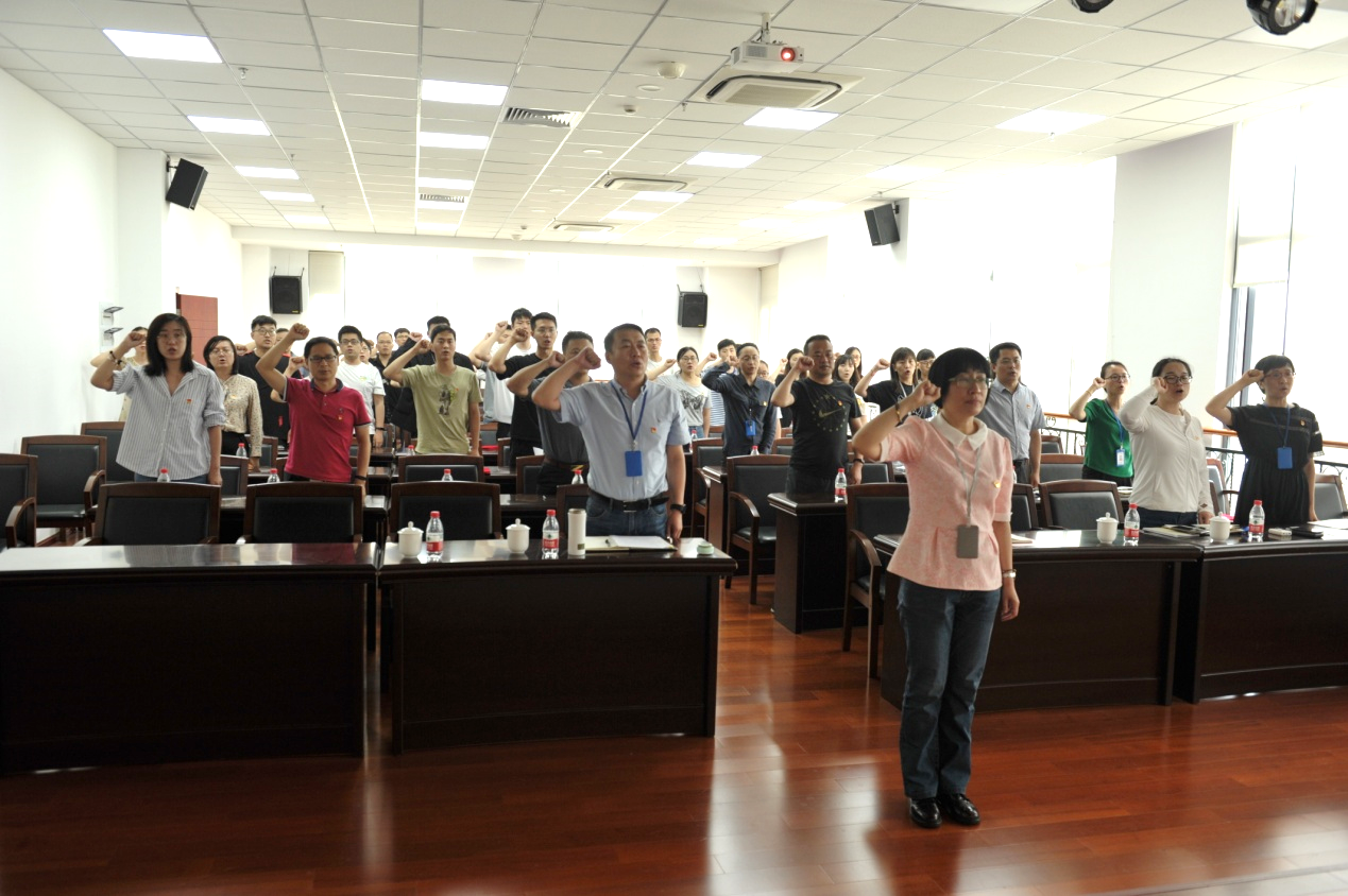 在老党员入党申请书展示环节,刘晓隽饱含深情地重读向大威、冯绍松、杨馥丽三位老党员的入党申请书和思想汇报,展示了他们的入党初心和对中国共产党炙热、执着的追求,老党员们对党、对国家、对科技事业无限的憧憬和期望深深地感染了在场的每个人,引起了大家强烈共鸣。随后在刘晓隽的带领下,全体党员面对党旗,一起重温入党誓词。