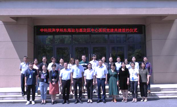 2022年8月4日,声学所东海研究站与上海市嘉定区中心医院举行党建共建签约仪式暨首期“医声说”青年学术交流会。区科委科协党组书记徐慧,党组成员、科协主席万刚,区卫健委副主任褚文革,嘉定区中心医院党委书记谢岳林、副院长曹励欧,声学研究所东海研究站站长许伟杰,副站长刘晓隽,党委副书记、纪委书记丁培以及双方相关部门负责人等参会。会议由丁培主持。