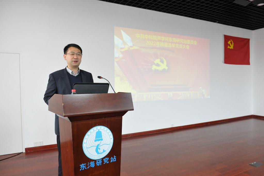 2022年11月23日上午,中科院声学所东海研究站党员大会隆重召开,中国科学院上海分院分党组副书记、纪检组组长、沪区党委副书记、纪委书记王东,中科院上海分院组织干部处刘晓平莅临大会。全站69名党员参加了大会,大会由东海站副站长刘晓隽主持。根据中科院沪区党委和声学所党委的批复,大会进行了东海站两委换届选举,产生了第三届中共中科院声学所东海研究站委员会和中共中科院声学所东海研究站纪律检查委员会。