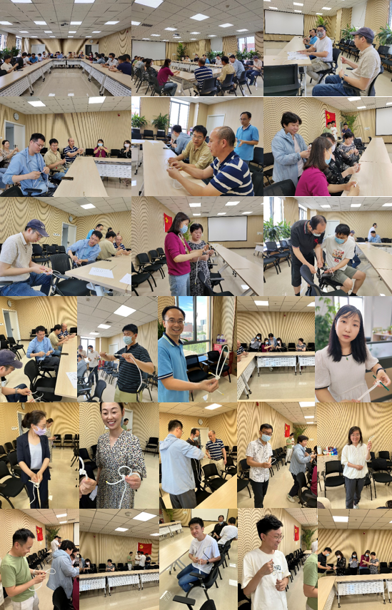 活动邀请有丰富出海经验的老师传授打绳结的方法,大家认真倾听,用心学习打绳结的手法技巧,或独自揣摩练习,或几人一组切磋学习,在轻松欢快的气氛中,掌握了出海试验多种工作场景下打绳结的方法。