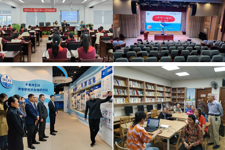 团队“因龄施教”,为不同年龄群体创制精品声学课程20余节。面向青少年,开发《声音的秘密》等趣味课程,激发其对科学的好奇心、想象力和探求欲;面向职业人群,将高端科技成果科普化形成讲解课程,增强其国防意识和爱国情怀;面向老年人,开发《珍爱听力,聆听生活》等课程,深入社区送上听力健康知识、听力水平检测等“上门服务”,帮助其树立健康生活理念。