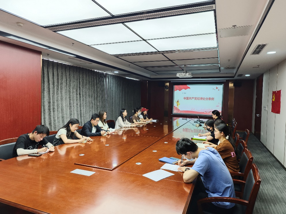 2024年5月22日上午,超声学第二党支部学生党小组在新科研楼1509会议室开展主题党日活动,集体学习《中国共产党纪律处分条例》(以下简称《条例》),党小组副组长余卿、崔柏乐等17名党员参加会议,会议由青年委员兼统战委员陆艳艳主持。