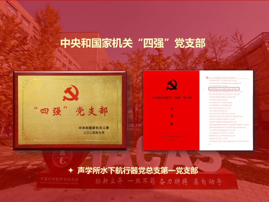 近日,中央和国家机关工委印发《中央和国家机关工委关于命名第三批中央和国家机关“四强”党支部的决定》。声学所水下航行器党总支第一党支部被命名为新一批中央和国家机关“四强”党支部。这是继声场声信息党总支第二党支部、超声学党总支第一党支部、噪声与音频声学党总支第一党支部、水下环境信息感知党支部、水下信息技术党总支第一党支部、机关第一党支部等六个党支部获此荣誉后,声学所第七个荣获中央和国家机关“四强”党支部称号的基层党组织。