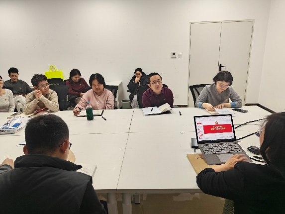 杨娟带领大家学习了《学习遵守党章,是共产党员的必修课》,聚焦中国共产党章程的学习,从党章“是什么、为什么”、“从哪里来”、“学什么”、“做什么”等四个角度解读党章的深刻内涵,呼吁大家反复学习党章,做到自觉以党章指导思想、以党章约束言行,时刻以合格党员标准要求自己,在科研生产活动中实现党章的融会贯通。
