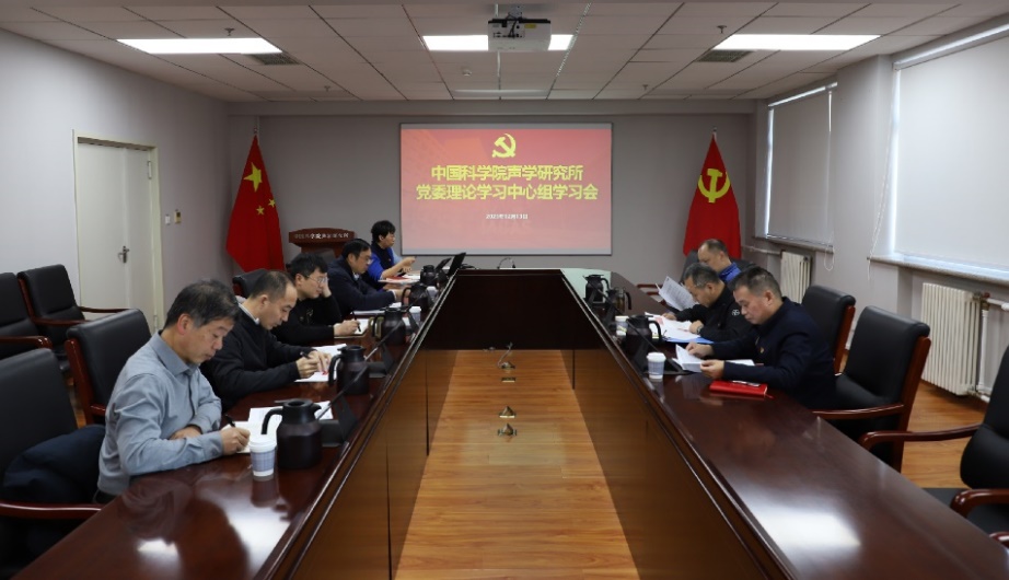 2025年12月13日,声学所党委召开理论学习中心组学习会,传达学习习近平总书记在中央经济工作会议上的重要讲话和中央经济工作会议精神,集体学习《中国共产党思想政治工作条例》《中国共产党章程》和党规党纪。党委书记库卫群主持会议,所领导班子成员、党委委员参加会议。