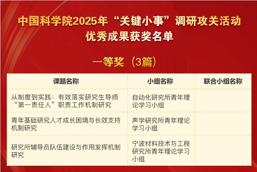 近日,在中国科学院2025年青年理论学习小组“关键小事”调研攻关活动中,声学所青年理论学习小组组长肖东牵头的调研课题《青年基础研究人才成长困境与长效机制研究》研究成果获一等奖。青年人才是科技创新事业发展重要的生力军,基础研究是整个科学体系的源头。声学所青年理论学习小组在所党委的指导下,深入了解青年科研人员在基础研究领域面临的成长困境,基于研究所有效问...2025-11-25