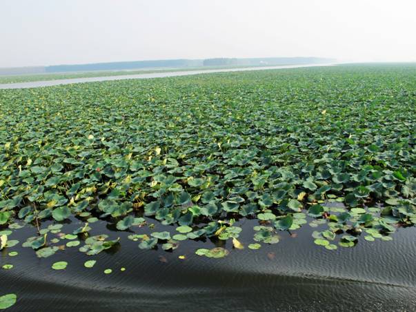 伴着落日的余晖,我们登上返航的游艇,穿梭在万亩碧荷、千顷芦苇之中,看着倒映在金色湖面上的美景,脑海里不时浮现出“微湖大队”、“铁道游击队”、“运河支队”等革命武装在这里与日军斗智斗勇的场景,他们用自己的热血之躯在这片美丽的土地上谱写出最壮丽的英雄之歌,“西边的太阳就要落山了,微山湖上静悄悄,弹起我心爱的土琵琶……”优美的旋律情不自禁地在船上响起。