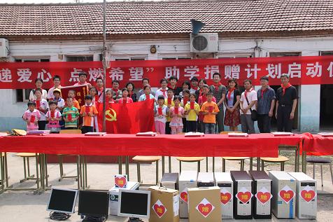 在了解这些情况之后,图像声纳支部向全室发出捐助倡议书,计划以图像声纳支部作为组织机构,以实验室全体职工为后盾,与怀柔育才学校建立一种长期资助共建的合作关系。主要设想包括:1)通过组织实验室职工个人捐助,设立一个奖学金,每个学期给予学校师生一定的资助;2)筹集闲置的计算机、打印机等教学设备进行捐助等;3)将来组织青年职工和学生,作为志愿者,前往学校,给孩子们讲课或做活动等内容。倡议书得到全室同事的热烈响应和室主任许枫同志的全力支持。在短短10天的时间内,就筹集了5000元现金、8台电脑、2台笔记本、1台打印机等捐赠款物。