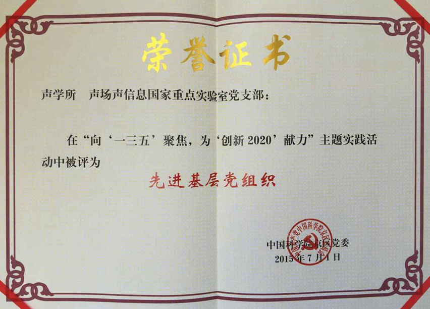 在此次“聚焦献力”主题实践活动表彰中,我所声场声信息国家重点实验室支部获得先进基层党组织荣誉称号、黄海宁同志获得优秀党员荣誉称号、陈德华同志获得优秀党务工作者荣誉称号。在此向获表彰的集体和个人表示热烈祝贺!