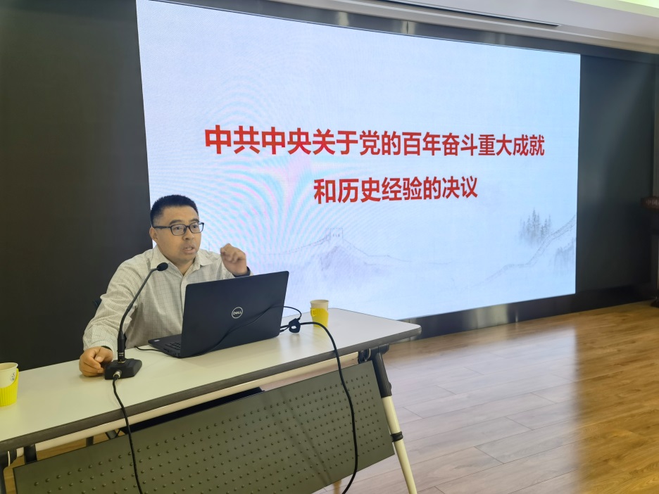 近日,机关青年理论学习小组与青促会青年理论学习小组联合组织专题党课,集体学习党的十九届六中全会精神,中央党校齐小林副教授受邀来所授课,共30余名青年党员参加。