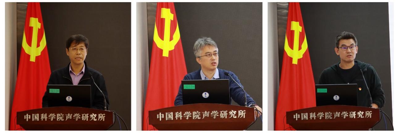 水下航行器党总支书记刘明刚、噪声与音频声学党总支书记白国锋、智能网络与信息处理技术党总支书记朱小勇作学习党的二十大精神重点发言。聚焦发挥党建引领作用,推进党建与业务工作的深度融合,他们紧密结合实验室科研任务实际,分别以“扶贫攻坚”“宁静中国”“网络强国”为主题,围绕带领党员提高政治领悟力、强化国家发展的战略支撑、科技创新切实转化为实现高质量发展的思路举措等内容,同与会同志交流心得体会。他们一致表示,要坚定信心,埋头苦干,始终牢记使命和责任,坚决把党的二十大精神落到实处。