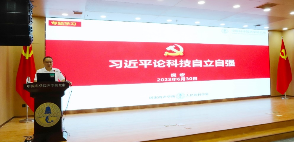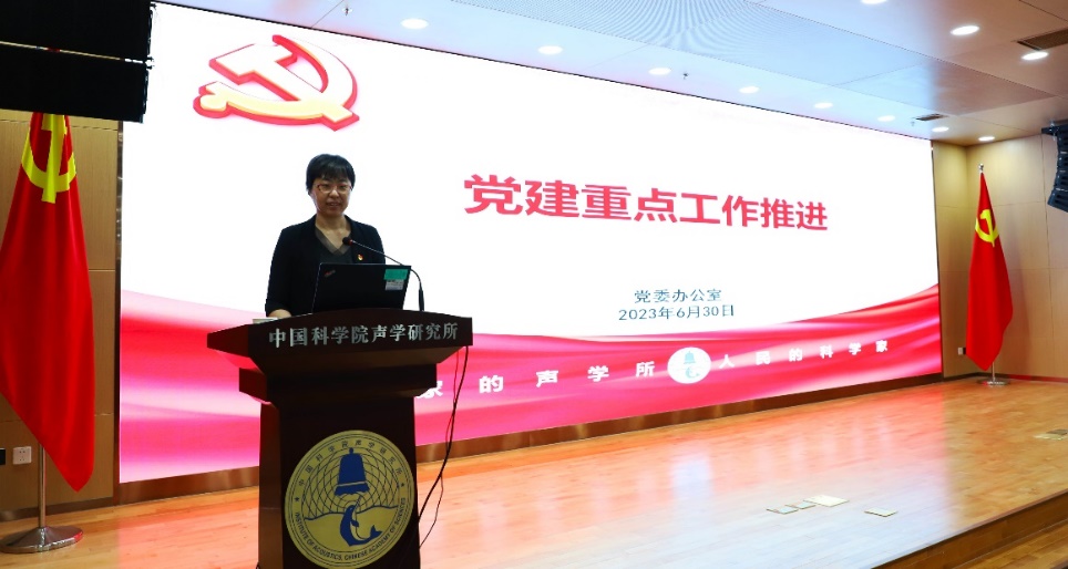 2023年6月30日上午,声学所在科研综合楼1503召开第二季度党建工作推进会,会议传达中国科学院党的建设工作会议精神,专题学习习近平总书记《论科技自立自强》,部署推进了近期党建重点工作。党委书记倪宏主持会议。各党支部(总支)书记、副书记参会。三个研究站以视频形式同步参会。