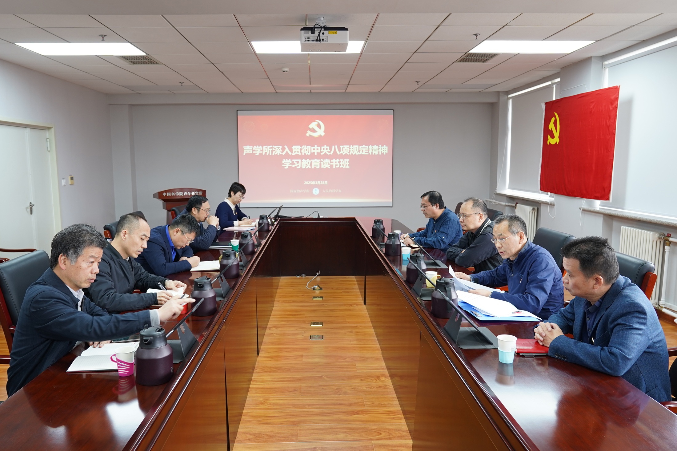 2025年4月29日,声学所党委举办深入贯彻中央八项规定精神学习教育读书班暨理论学习中心组集体学习会,深入学习贯彻习近平总书记关于加强党的作风建设的重要论述,所领导班子成员、党委委员参加会议。2025年4月29日,声学所党委举办深入贯彻中央八项规定精神学习教育读书班暨理论学习中心组集体学习会,深入学习贯彻习近平总书记关于加强党的作风建设的重要论述,所领导班子成员、党委委员参加会议。在前期个人自学的基础上,所长李风华、党委书记库卫群、党委委员马晓川分别领读领学《习近平关于加强党的作风建设论述摘编》相关篇目并作重点发言。与会同志在交流研讨中表示,...2025-05-07