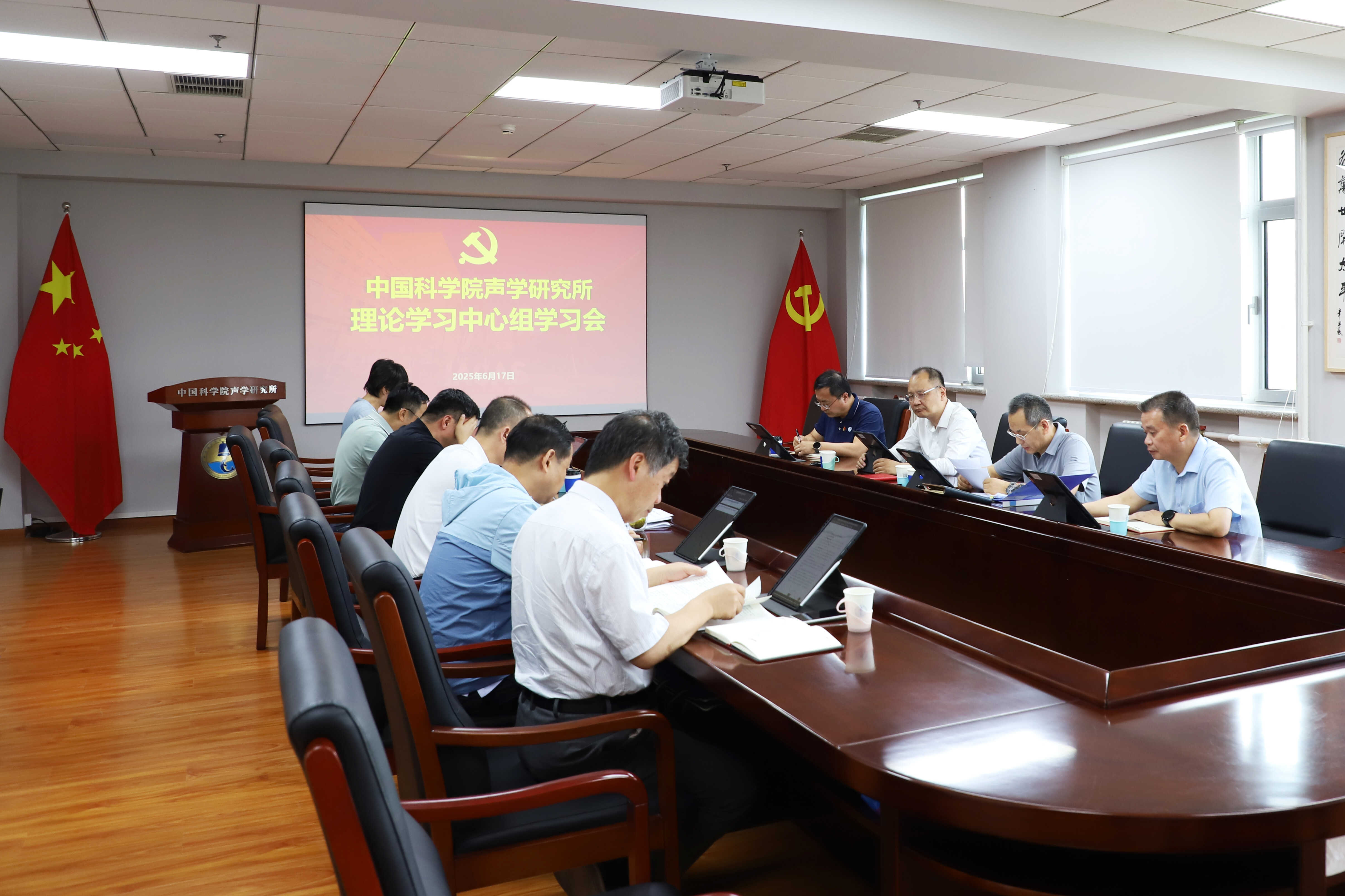 2025年5月30日,声学所党委举办深入贯彻中央八项规定精神学习教育读书班第三次集中学习暨理论学习中心组集体学习会,深入学习贯彻习近平总书记关于加强党的作风建设的重要论述,所领导班子成员、党委委员参加会议。2025年5月30日,声学所党委举办深入贯彻中央八项规定精神学习教育读书班第三次集中学习暨理论学习中心组集体学习会,深入学习贯彻习近平总书记关于加强党的作风建设的重要论述,所领导班子成员、党委委员参加会议。党委书记库卫群主持会议。在前期读书班和自学的基础上,副所长李明庚、杨军、杨波分别领读领学《习近平关于加强党的作风建设论述摘编》相关篇目并作重点发言。与...2025-06-04