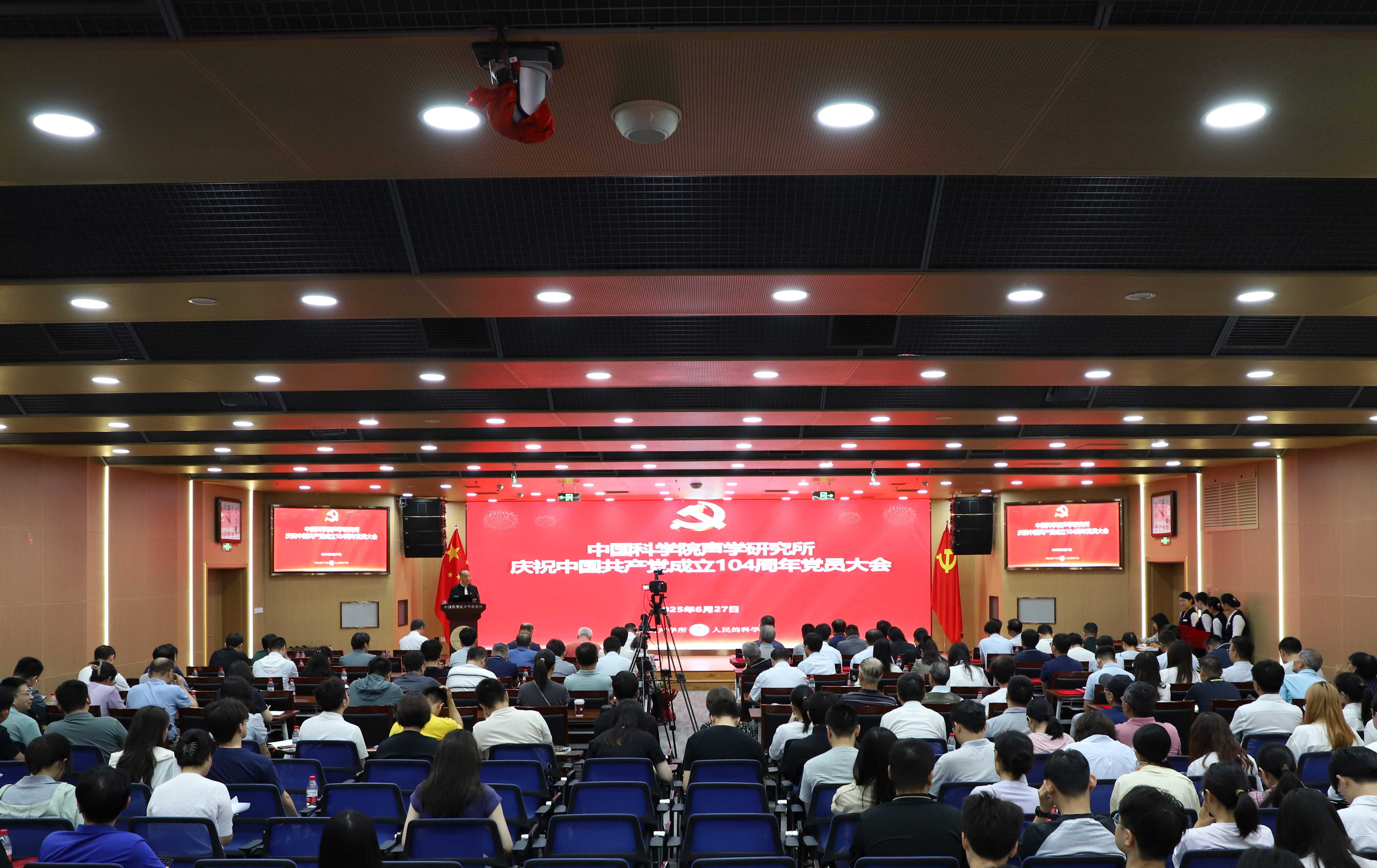 为庆祝中国共产党成立104周年,扎实推进深入贯彻中央八项规定精神学习教育,2025年6月27日上午,声学所召开庆祝中国共产党成立104周年党员大会,党委书记库卫群作专题党课报告,会议举行新入党党员宣誓、“光荣在党50年”纪念章颁发和“两优一先”表彰仪式,所领导班子成员、党委委员、纪委委员、支部书记及支委、受表彰人员、新入党党员,以及职工和学生党员等300余人参加会议。为庆祝中国共产党成立104周年,扎实推进深入贯彻中央八项规定精神学习教育,2025年6月27日上午,声学所召开庆祝中国共产党成立104周年党员大会,党委书记库卫群作专题党课报告,会议举行新入党党员宣誓、“光荣在党50年”纪念章颁发和“两优一先”表彰仪式,所领导班子成员、党委委员、纪委委员、支部书记及支委、受表彰人员、新入党党员,以及职工和学生党员等300余人参加会...2025-06-30