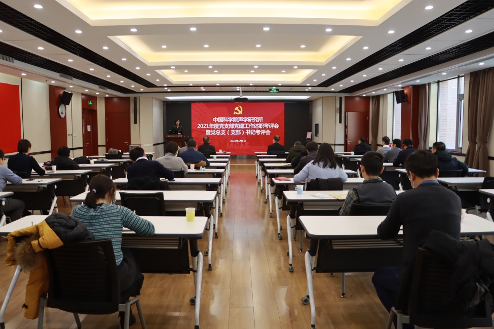 2022年1月5日下午,声学所在DSP楼四层多功能厅召开“基层组织提升年”活动总结评估暨2021年度党支部(总支)书记述职考评会。所领导、党委委员、纪委委员、工会/职代会党员负责人、实验室主任(党员)、党支部(总支)书记、党委办公室及监督审计(纪委)办公室相关人员近30人参会。会议由党委副书记、纪委书记李浩然主持。