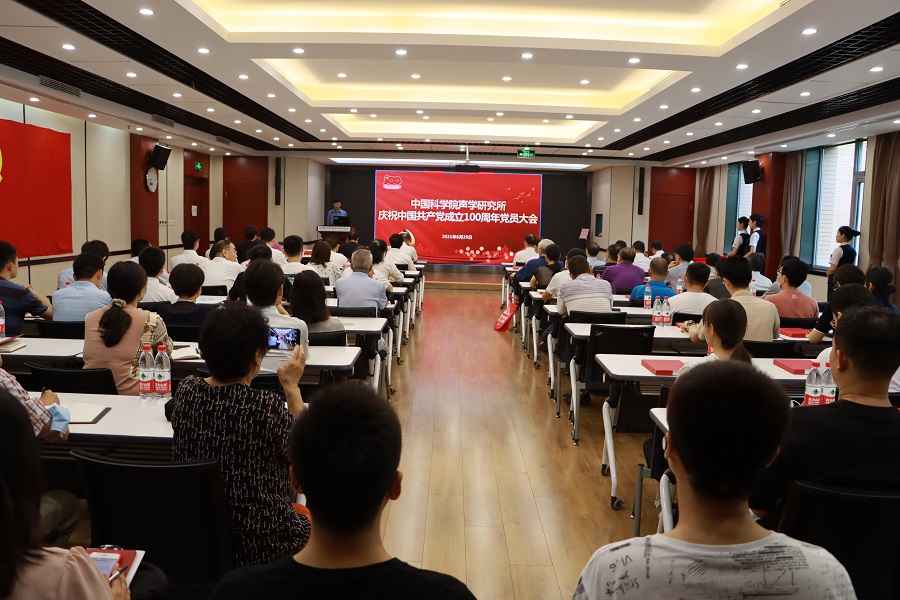 2021年6月29日上午,声学所党委召开庆祝中国共产党成立100周年大会,所领导班子成员、党委委员、纪委委员、各党支部书记,受表彰人员、新入党党员以及在职、学生、离退休党员代表等百余人参加会议。