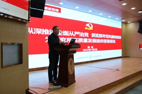 党委书记倪宏首先作党风廉政建设专题党课。他以《纵深推进全面从严治党,抓实抓牢党风廉政建设,为研究所高质量发展提供坚强保证》为题,以学习宣传贯彻党的二十大精神为主线,围绕健全全面从严治党体系、加强新时代廉洁文化建设、严格落实“一岗双责”三个方面展开,深入阐述、明确提出落实好党风廉政建设责任制,当好“四个表率”,守正创新、团结奋斗的要求。他指出,声学所作为国家战略科技力量主力军,要深入学习领会和全面贯彻落实党的二十大精神,以习近平新时代中国特色社会主义思想为指引,更加坚定自觉地把思想和行动统一到党中央要求上来,深刻领悟“两个确立”的决定性意义,增强“四个意识”、坚定“四个自信”、做到“两个维护”,坚定不移推进全面从严治党,持续加强党风廉政建设和反腐败工作,把全所广大党员干部职工的智慧和力量凝聚到落实党的二十大的各项重大任务上来,擦亮科技报国为民的初心,铸牢国家战略科技力量的使命,自信自强、守正创新,踔厉奋发、勇毅前行,以党风廉政建设实效为推动研究所高质量发展提供坚强政治保证,落实好各项工作目标任务,用实际行动为加快实现高水平科技自立自强做出新的贡献。