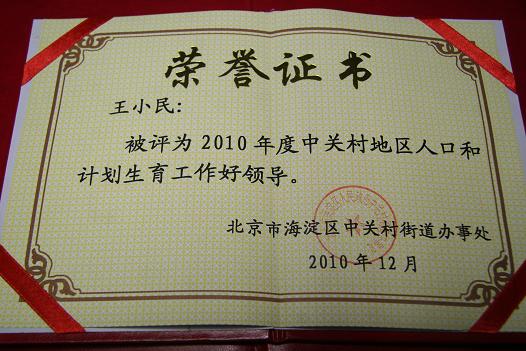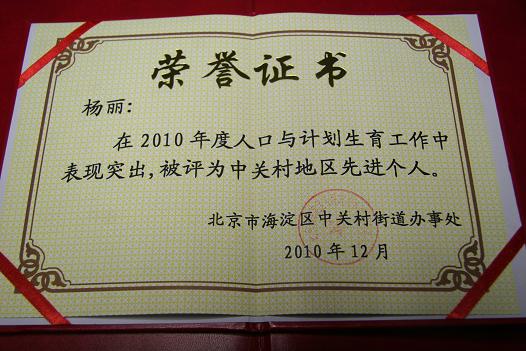 声学所荣获“2010年度中关村地区计划生育先进集体”