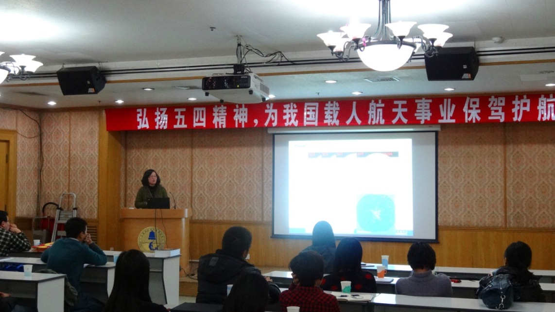 12月28日下午,声学所团委、心声学知社在DSP大楼多功能厅举办了心声论坛第七期讲座,主题为“弘扬五四精神,为我国载人航天事业保驾护航”。主讲人钟秋珍副研究员来自中国科学院国家空间科学中心空间环境研究预报室,该实验室曾获得2012年“中国青年五四奖章集体”的荣誉称号。声学所办公室副主任张莉出席了讲座,来自协作二片各所的青年职工和研究生参加了讲座并进行了相互交流,讲座由团委副书记蔡宇主持。