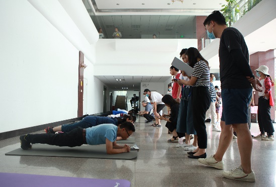 活动开展期间正值全所高温假,各分工会根据本部门工作特点,以现场和线上相结合的形式,组织了形式多样的所内选拔赛。所领导带头参赛,广大干部职工踊跃参与,其中机关分工会参与率达到了82.6%。休假、出差人员自主安排时间和地点,如湖海试人员就地取材,用白纱手套等物品当垫子,在船上的安全地区做平板支撑,通过视频和照片的方式发到微信群或小程序灵活参赛。所内职工利用工作间隙在办公室、走廊等场所参赛,大家互相加油和鼓励,全所上下投入到了浓浓的健身活动气氛之中。