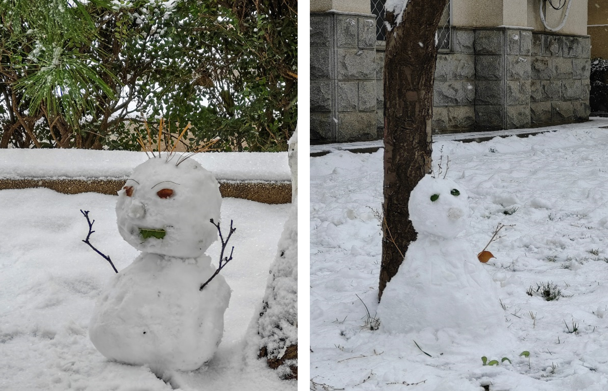 随着战斗的结束,雪块散落一地,大家纷纷舒展身体,准备迎接下一个挑战——堆雪人。一个个雪球堆叠起来,搓捏、塑形,一个个可爱的雪人慢慢地成型。大家用树枝、叶子作为眼睛和嘴巴、眉毛、头发、双臂。雪人们在白雪世界中欢快地伫立着,仿佛也在庆祝着这美妙的冬日盛会。