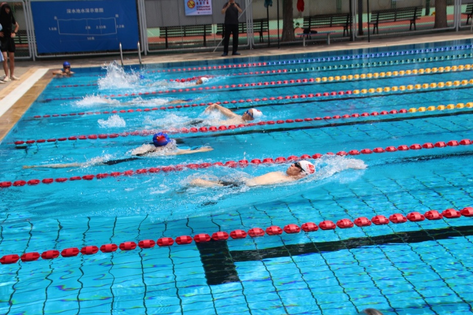 随着裁判一声令下,来自两个所的参赛选手在泳道中挥臂逐浪、奋勇争先,比赛现场气氛热烈、精彩不断。经过激烈的角逐,超声学分工会黄泥分别获得男子自由泳和仰泳个人赛第一名,机关分工会李瑨瑶分别获得女子50米蛙泳和自由泳个人赛第一名。在最后进行的接力赛中,参赛选手娴熟配合、通力合作,将现场氛围推向顶点,最终电工所夺得团体接力赛冠军,声学所获得亚军。